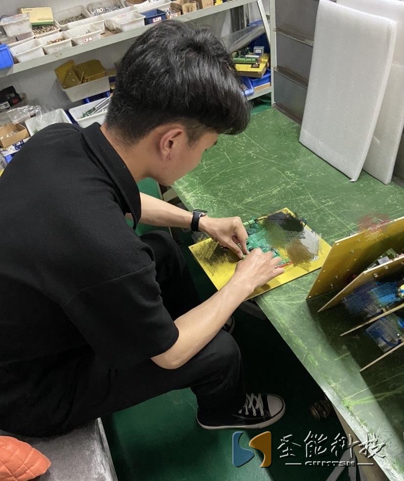 在大規(guī)模工業(yè)化生產(chǎn)的時代,“匠人”精神值得尊重,他們的目光堅韌不屈,他們穿著工作服,印有“圣能科技”四個字耀眼奪目,他們或站、或蹲、或坐、或附身低探,他們專注的目光,他們集中的注意力,印證了這里的忙碌。