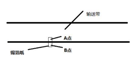 如上圖所示,在輸送帶上固定住一張錫箔紙,A、B為上面的兩個測量點,接開關(guān)量信號至稱重儀表,當(dāng)開關(guān)量觸點端子同時接觸到AB兩個點,儀表開始計時,皮帶運行一圈,開關(guān)量觸點端子再一次同時接觸到AB兩個點,儀表自動計算出皮帶運行一周時間(或多周)。 t0=第一次接觸AB的時間; t1=運行一周后再一次接觸AB的時間; t=t1-t0 ,為皮帶運行一周時間; V=皮帶運行速度,通過測速傳感器測量; L=V×t,得出皮帶一周長度。