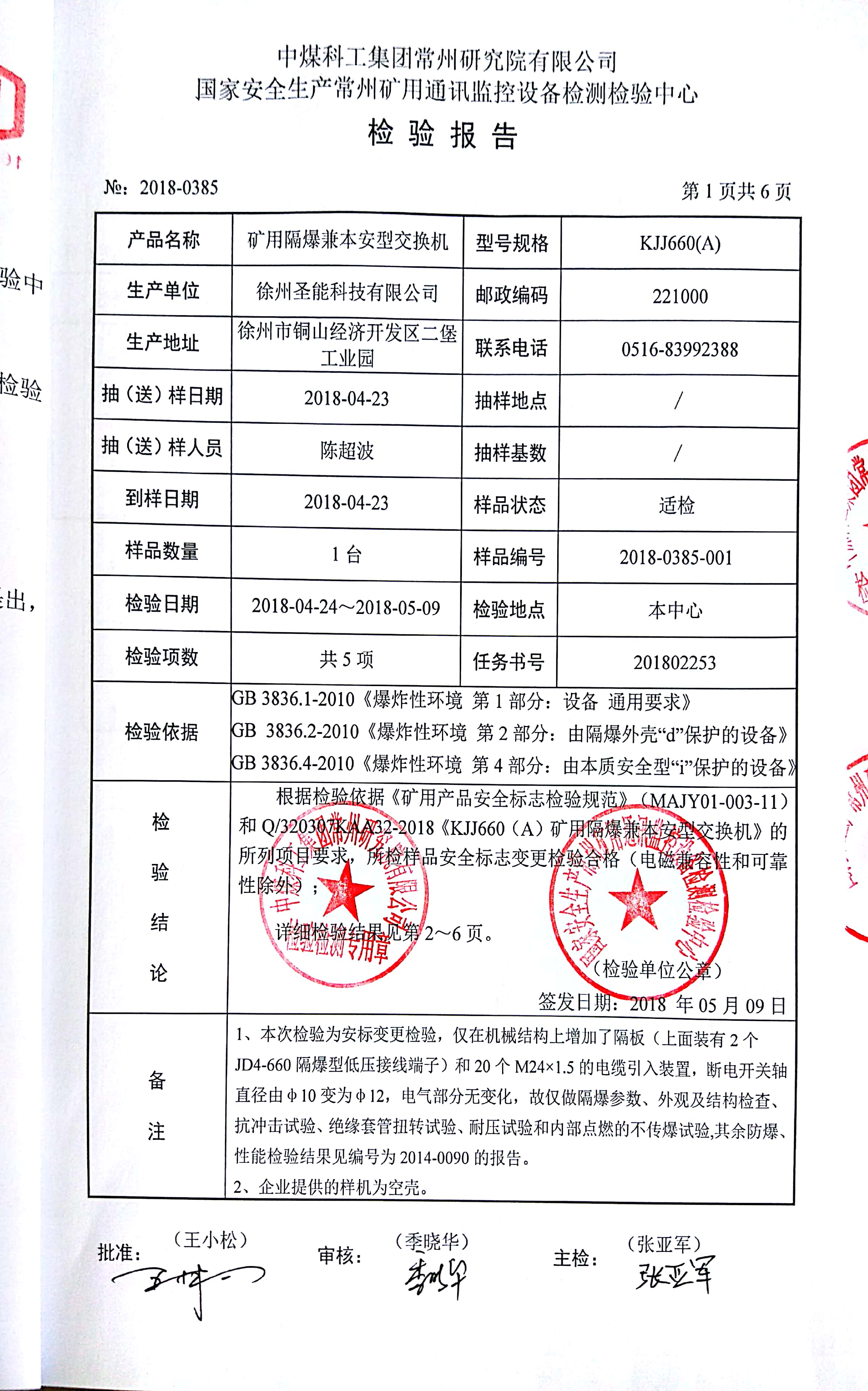 KJJ660(A)_礦用防爆兼本安型交換機防爆合格證