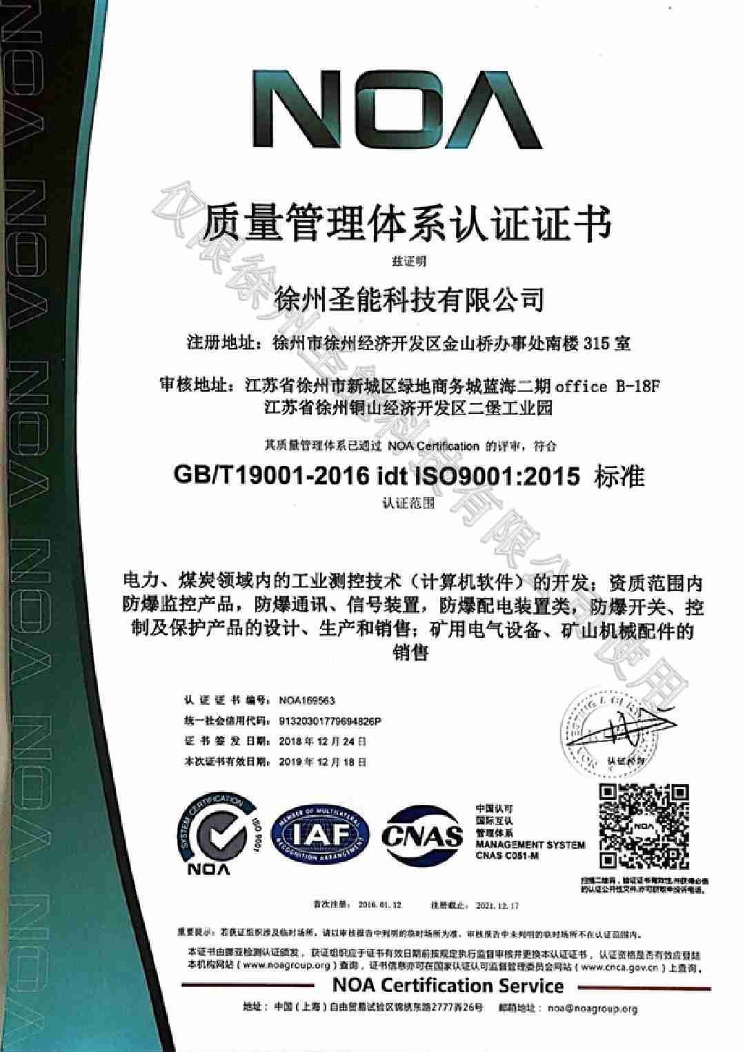 9001質(zhì)量管理體系認(rèn)證證書(shū)