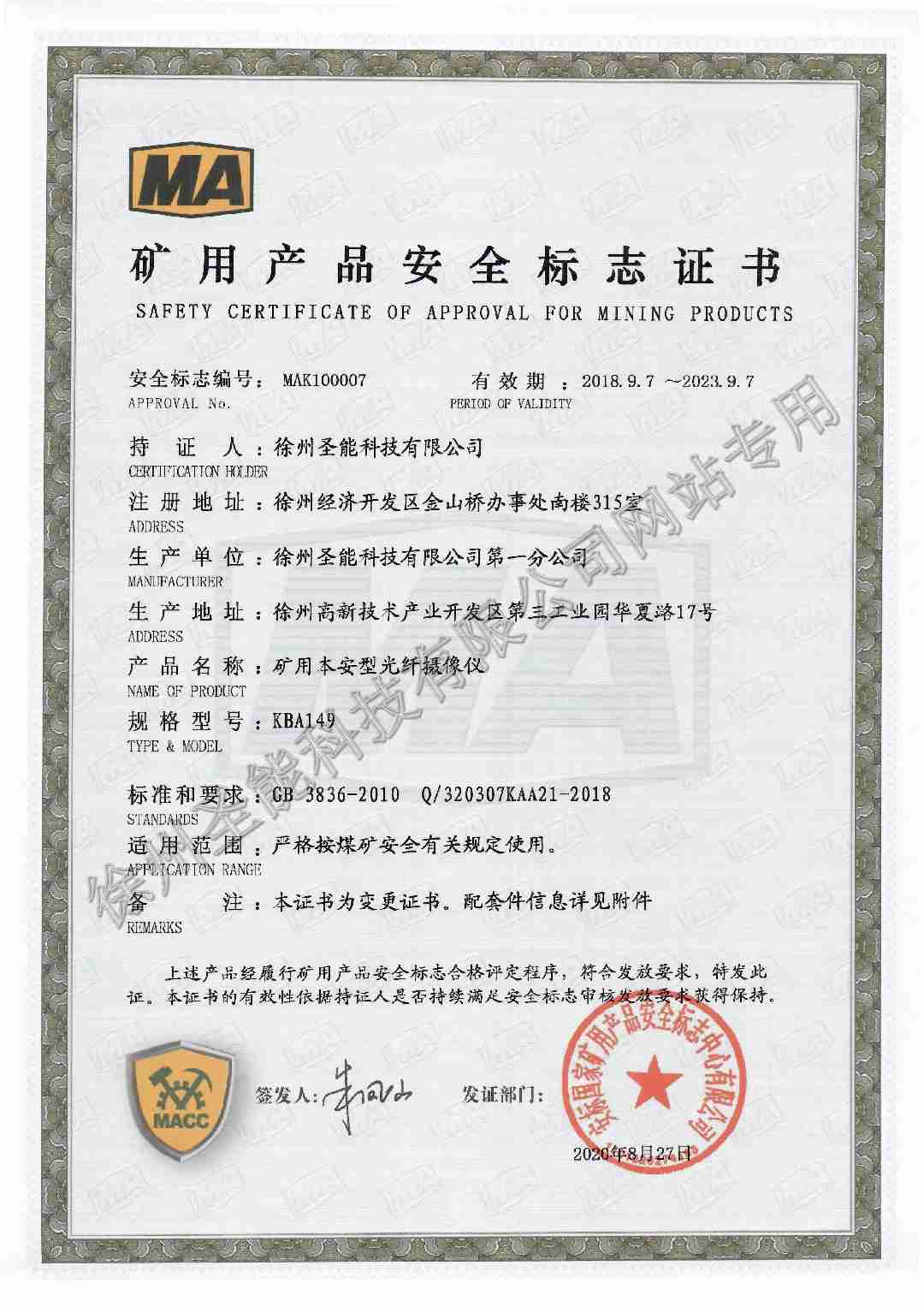 KBA127礦用隔爆型網(wǎng)絡(luò)攝像儀防爆證