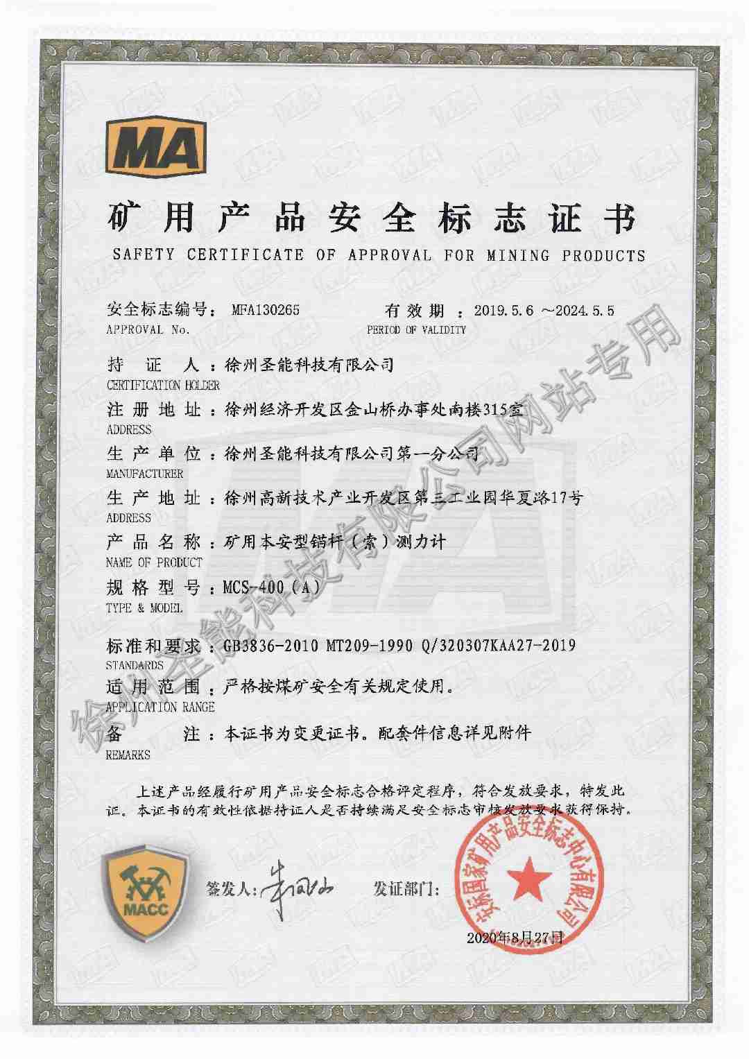 MCS-400(A)礦用本安型錨桿(索)測力計煤安證