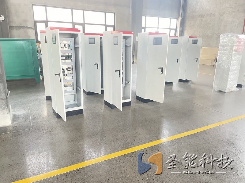 稱重給料機(jī)的制造組裝工作,目前正在對給料機(jī)控制柜進(jìn)行最終的檢驗測試工作。一排排一列列給料機(jī)控制柜整齊排列,可見圣能科技