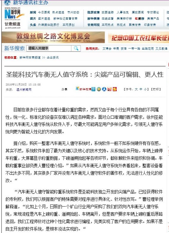 “汽車衡無(wú)人值守智能稱重系統(tǒng)軟件是圣能科技獨(dú)立開發(fā)的尖端產(chǎn)品,已經(jīng)獲得軟件的專利權(quán),我們可以根據(jù)客戶的特殊需要對(duì)程序進(jìn)行具體化、針對(duì)性改寫。”曹經(jīng)理舉例解釋道,“比如上個(gè)月,日照的一個(gè)礦山行業(yè)用戶采購(gòu)了我們的雙向汽車衡無(wú)人值守系統(tǒng),常規(guī)流程是汽車上磅稱重、道閘抬起、車輛離開,但是客戶要求車輛上磅稱重后原路退回,我們工程師針對(duì)這種個(gè)性化需求進(jìn)行編程,完美實(shí)現(xiàn)了客戶的應(yīng)用要求。如果不是自主開發(fā)的軟件系統(tǒng),是根本沒法實(shí)現(xiàn)的。“