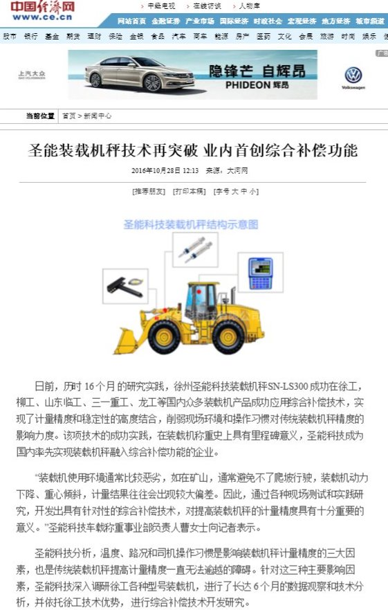 中國經(jīng)濟網(wǎng)報道:《圣能裝載機秤技術(shù)再突破 業(yè)內(nèi)首創(chuàng)綜合補償功能》