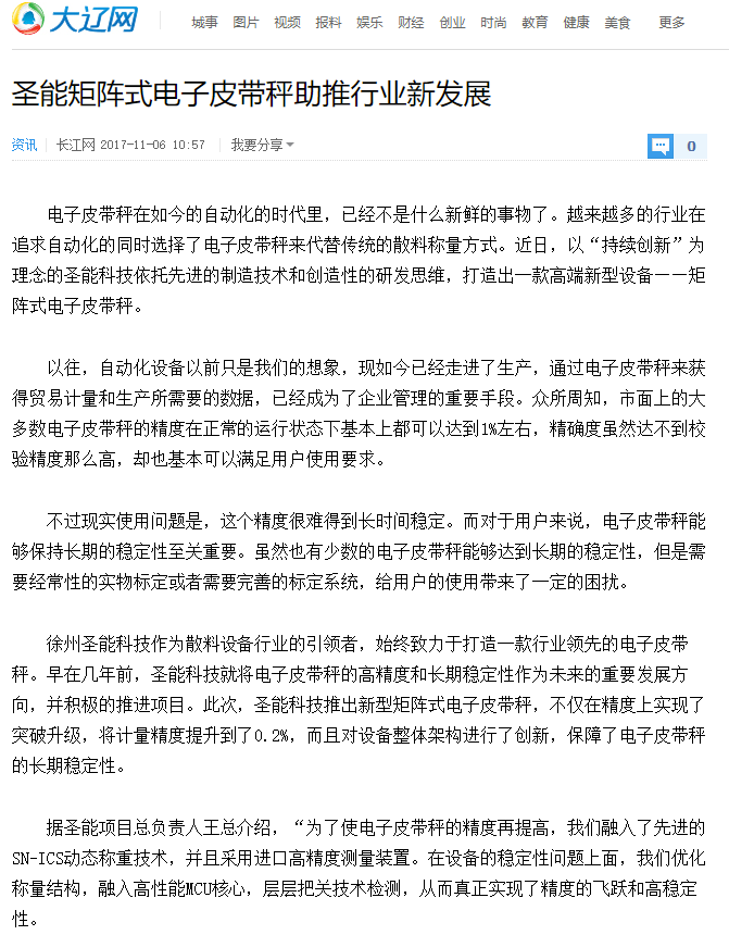皮帶秤來代替?zhèn)鹘y(tǒng)的散料稱量方式。近日,以“持續(xù)創(chuàng)新”為理念的圣能科技依托先進的制造技術和創(chuàng)造性的研發(fā)思維,打造出一款高端新型設備——