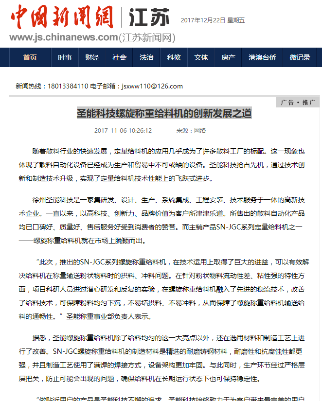 圣能科技螺旋稱重給料機的創(chuàng)新發(fā)展之道